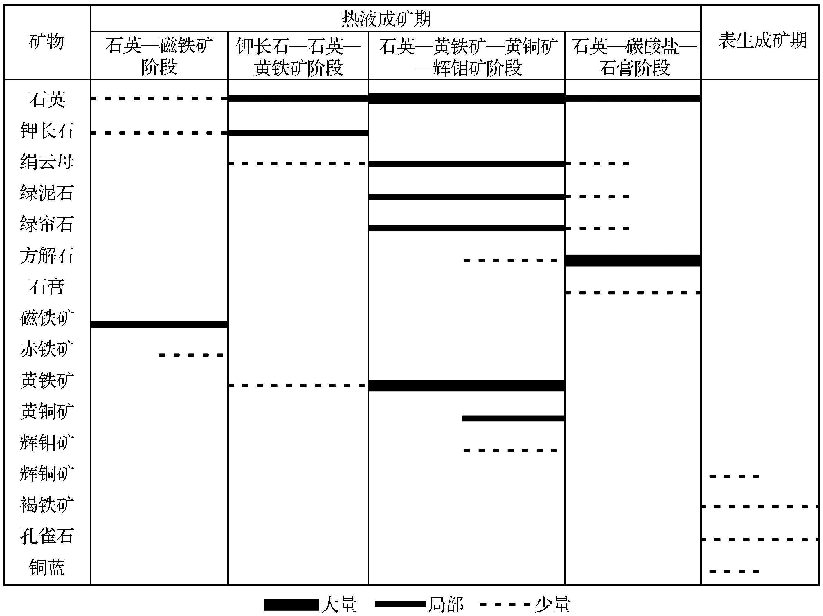 | 图7 玉带铜矿床成矿阶段和矿物生成顺序 |