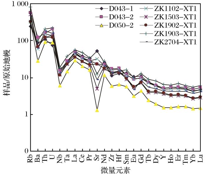 ... Normalized spider diagram of trace elements in primitive mantle (base map after Sun et al.,1989)Fig.54 讨论4.1 物源区风化作用