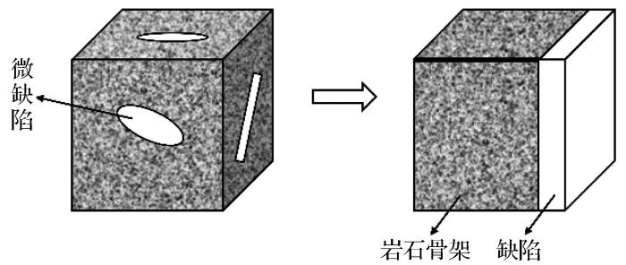 国内外学者从多个角度对岩石本构模型进行了研究。如:Chen et al.(2019)对传统统计损伤模型进行修正;Chen et al.(2018)比较了幂函数与Weibull分布函数的统计损伤模型;Gao et al.(2018)提出了考虑热力耦合的本构模型;Miao et al.(2018)建立了水化学环境下的本构模型;Hu et al.(2018)构建了硬岩的非线性本构模型;Huang et al.(2018)建立了弹塑性损伤本构模型;曹文贵等(2003)建立了正态分布损伤本构模型;李海潮等(2017)对应变等价性假设的不足进行了修正,得到新的岩石损伤本构模型;Liu et al.(2018)使用Logistic方程来拟合岩石的损伤过程,并以此建立了岩石损伤本构模型;贾宝新等(2022)提出了基于Hoek-Brown准则的高温岩石损伤本构。上述岩石损伤本构模型与特定环境下的岩石应力—应变曲线相吻合,但是对应力—应变的压密阶段描述略有不足,而含有初始微缺陷的脆性岩石一般有压密阶段。张超等(2020)对两类初始空隙进行分析,建立了考虑初始空隙的岩石损伤本构模型。曹文贵等(2016)考虑空隙压密效应,提出了相应的本构模型。张超等(2021)基于应变等效假设的弹性模量法,构建了岩石损伤本构模型。Cao et al.(2010)通过确定孔隙率来分析空隙和体积变化对岩石行为的影响,然后建立相关的损伤模型。这些学者建立的本构模型考虑到微缺陷会导致岩石产生压密阶段,但忽略了新增微缺陷对脆性岩石应变软化阶段的影响。由此可见,上述学者的研究对于岩石损伤本构模型的发展和进步作出了重要的贡献,提出的岩石损伤本构模型已考虑到微缺陷会导致岩石产生压密阶段,具有很强的针对性,但对于脆性岩石全应力—应变曲线的描述仍有一定局限性。因此,本文针对含有初始微缺陷脆性岩石,重点考虑微缺陷对压密阶段和应变软化阶段的影响,进一步完善脆性岩石全应力—应变过程损伤本构模型。
