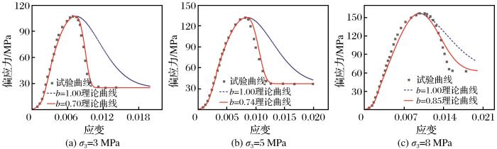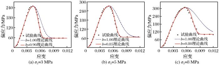 ... Lemaitre et al.(1985)提出的等效应变假设认为岩石未损伤时,D=0,D=1时岩石完全损伤,实际上岩石完全损伤仍有承载能力.等效应变假设改进为 ...