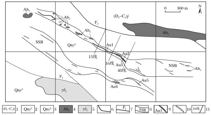 龙头沟金矿体剖面示意图(修改自刘新伟等,2011)