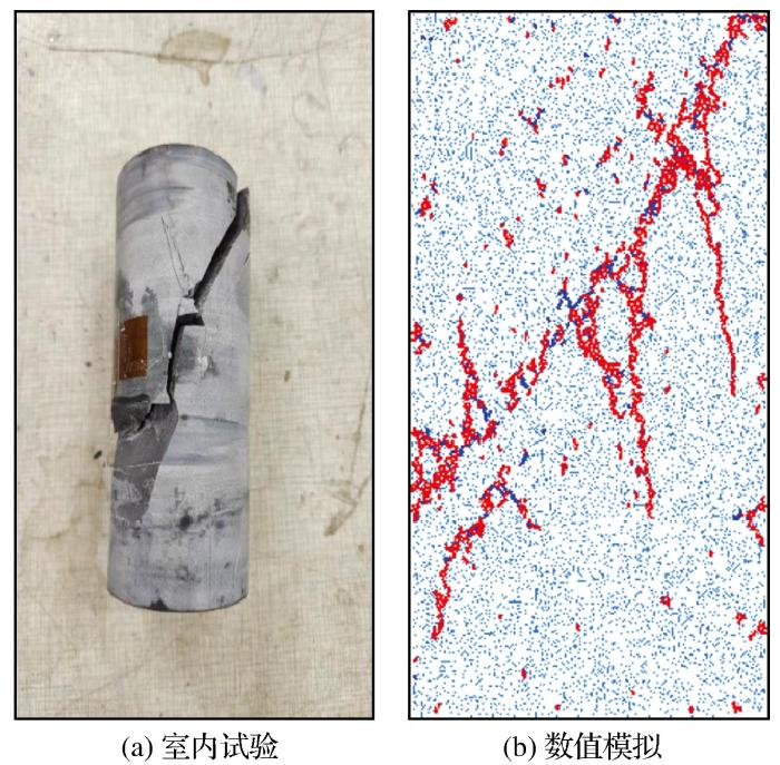 PFC中需要通过标定细观参数使得颗粒流模型反映出来的宏观参数符合实际情况,在进行模拟计算之前需要赋予岩石模型特定的接触模型,并通过不断试错将得到的模拟结果与室内试验结果进行对比验证,找到一组合适的细观参数用于本次的模拟计算。