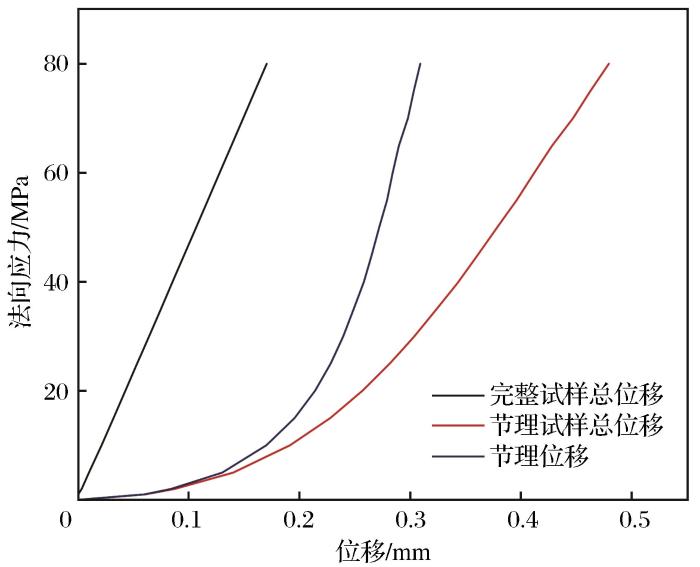 由图5可知,改进设置后的节理闭合颗粒流模型能够较好地描述节理法向闭合曲线的非线性特性。