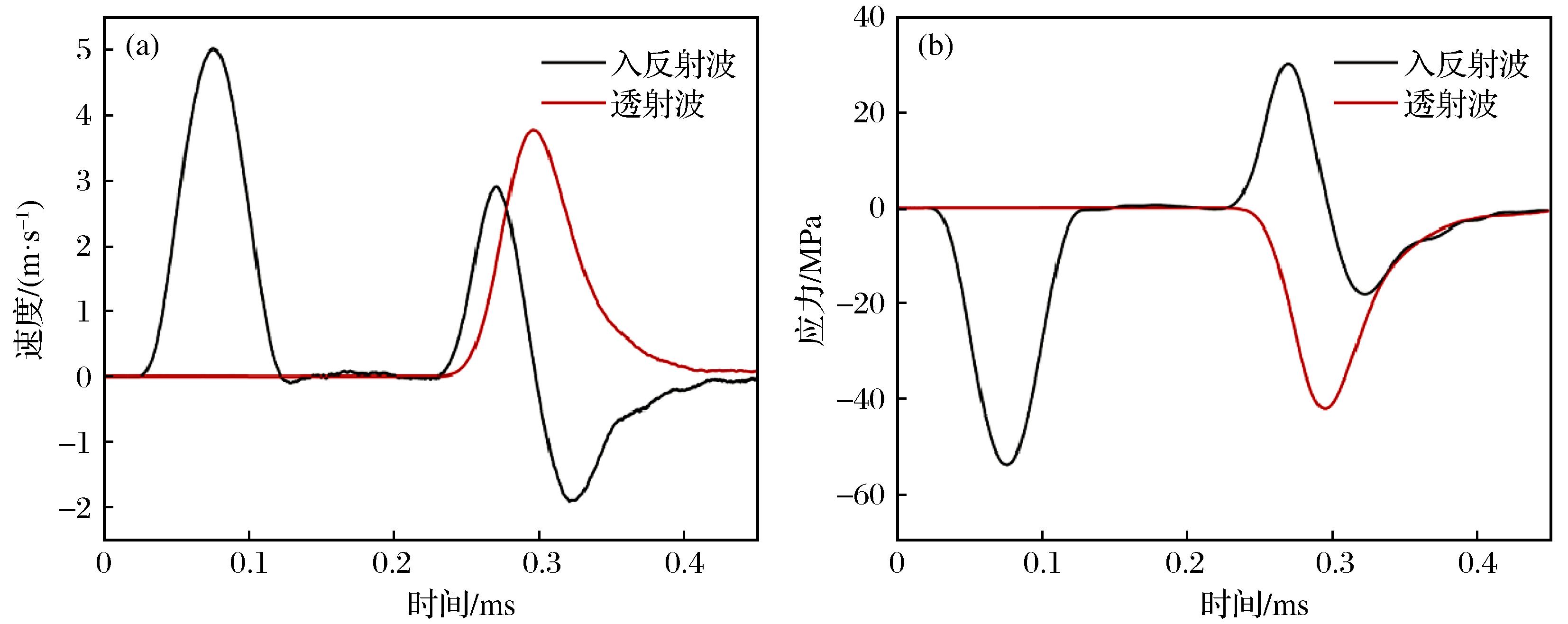 | 图7 细观初始刚度为100 GPa/m时的速度波形(a)与应力波形图(b) |