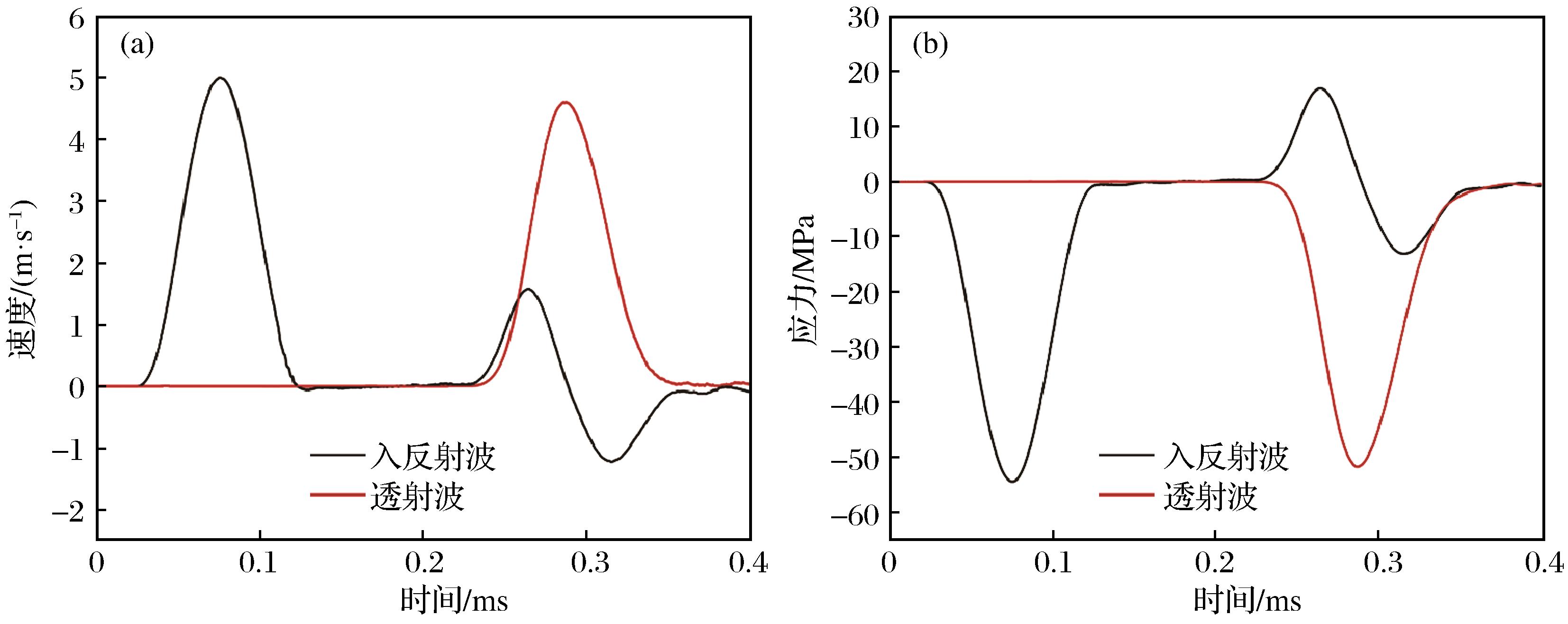 | 图9 细观初始刚度为300 GPa/m时的速度波形(a)与应力波形图(b) |