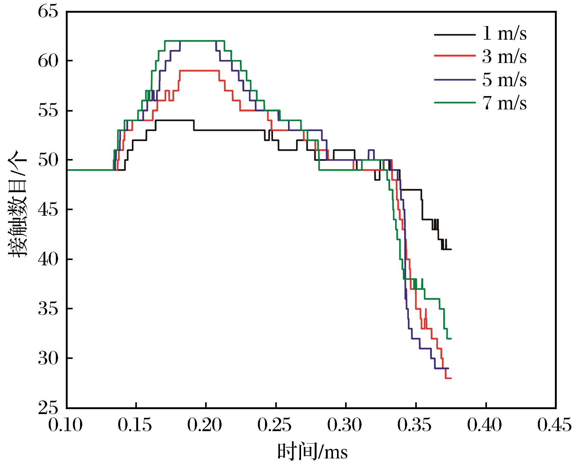 | 图15 不同振幅节理面颗粒接触数目变化曲线 |