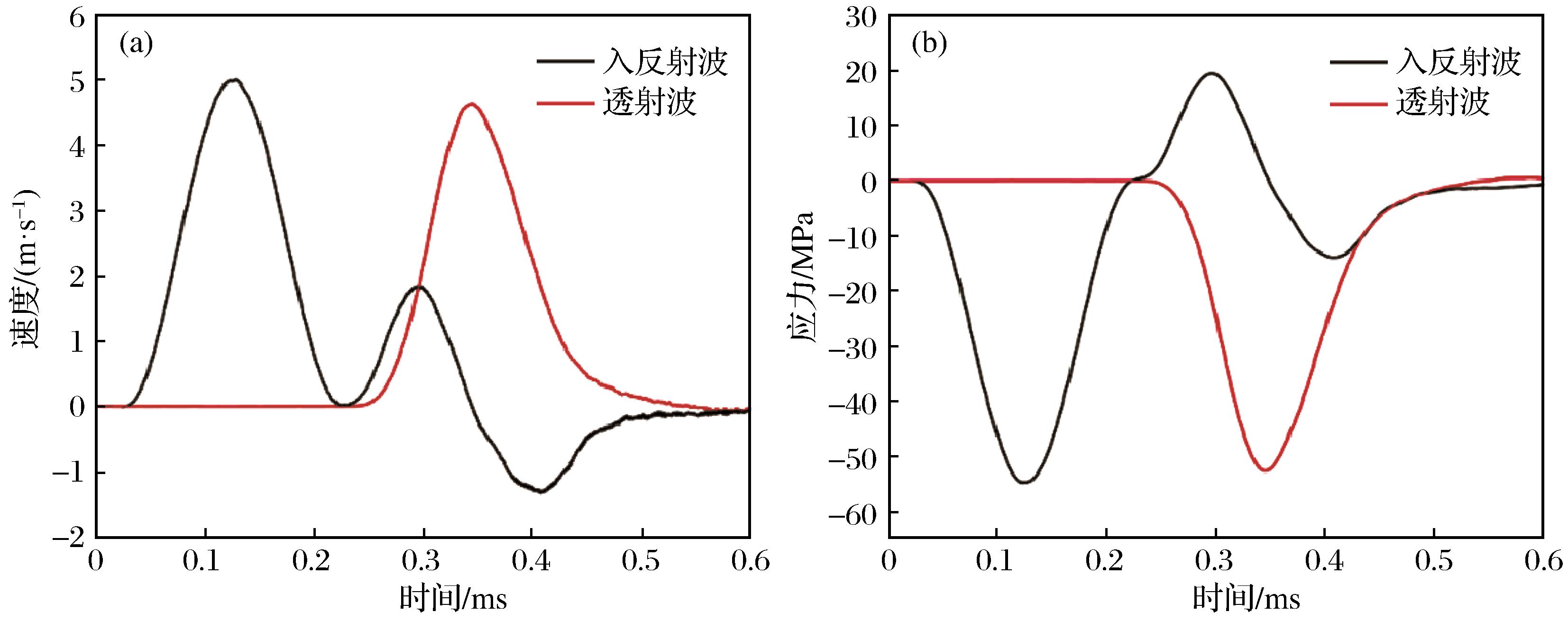 | Fig.16 Velocity waveform(a) and stress waveform(b) with wave frequency of 5 kHz |