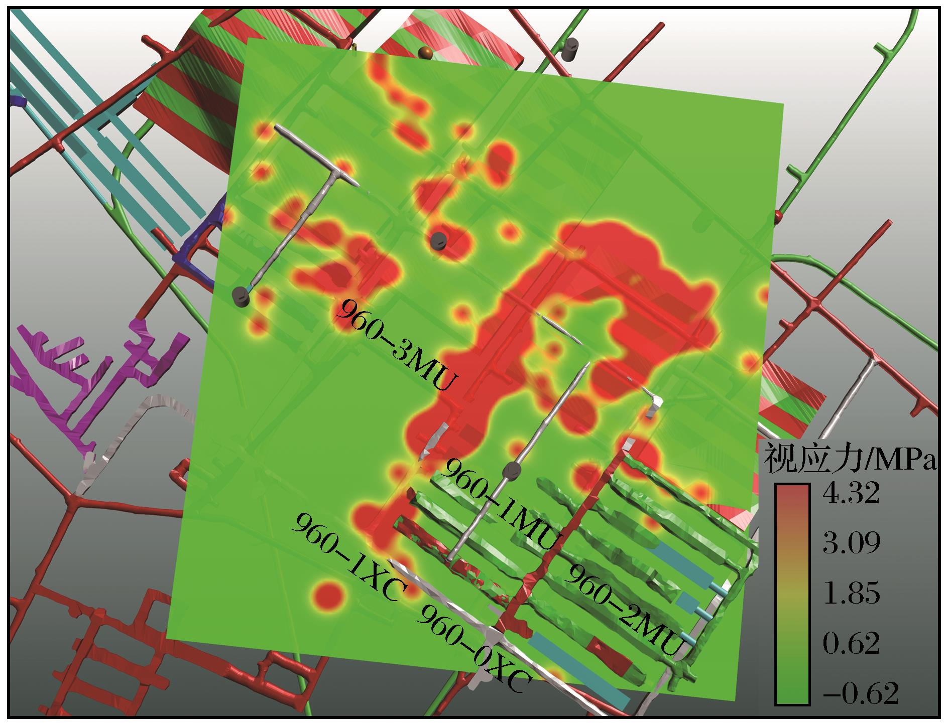 | 图11 微震监测数据视应力云图 |