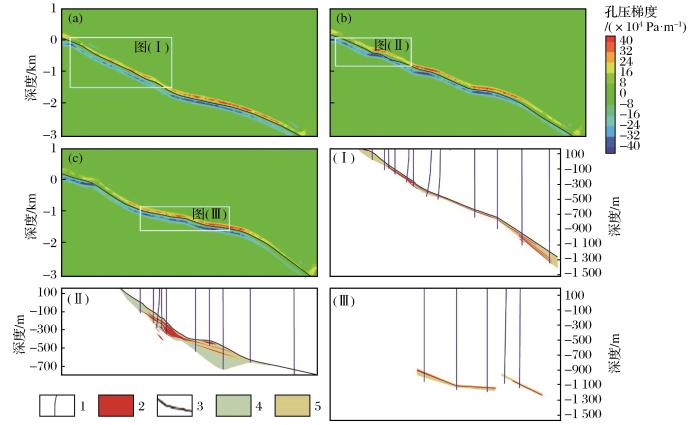 Z-direction pore-fluid pressure gradient of typical exploration line profile of Dayingezhuang gold deposit and its corresponding profiles[Ⅰ(60)、Ⅱ(76) and Ⅲ(88)]