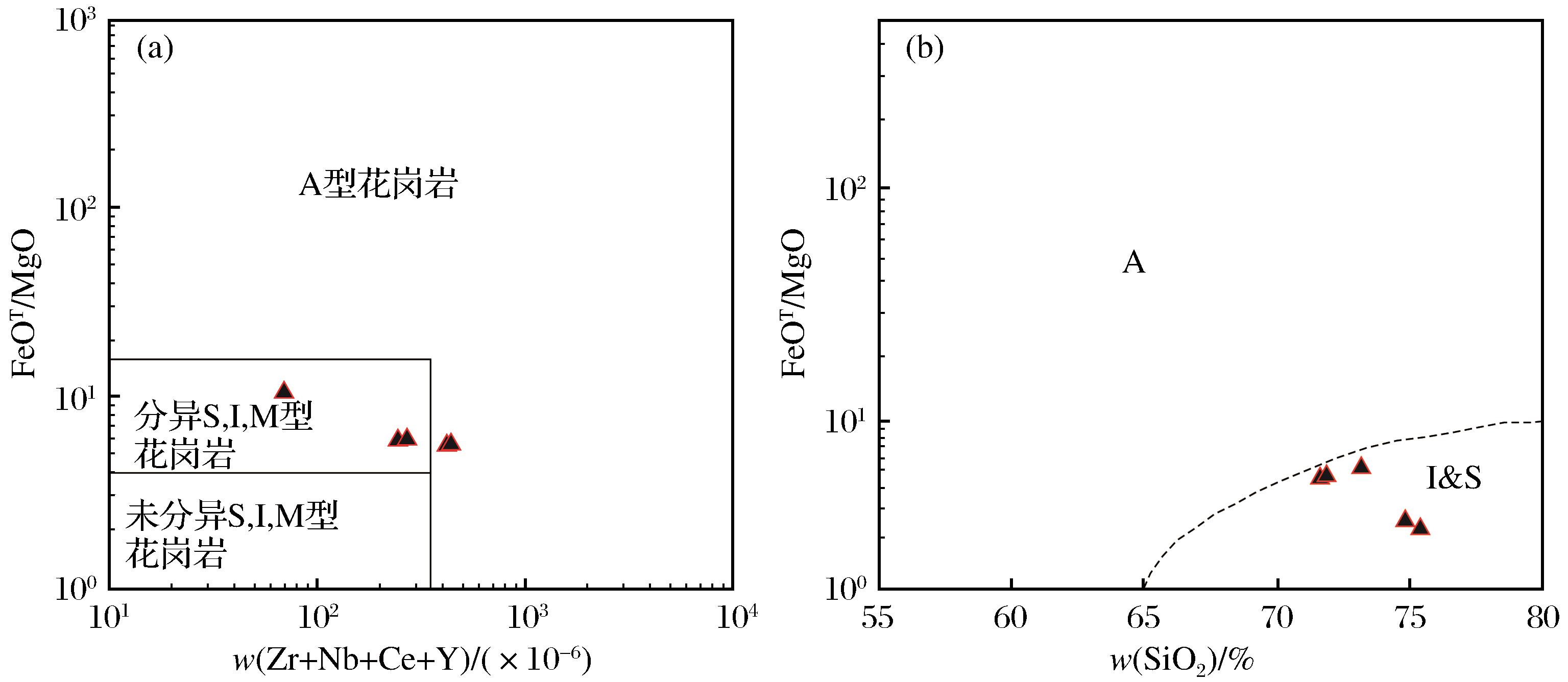 | 图7 白石花岗岩w(Zr+Nb+Ce+Y)-FeOT/MgO图解(a)(底图据 (底图据 |