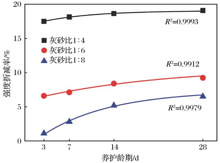 Strength reduction rate of backfill specimens with different ash-sand ratios