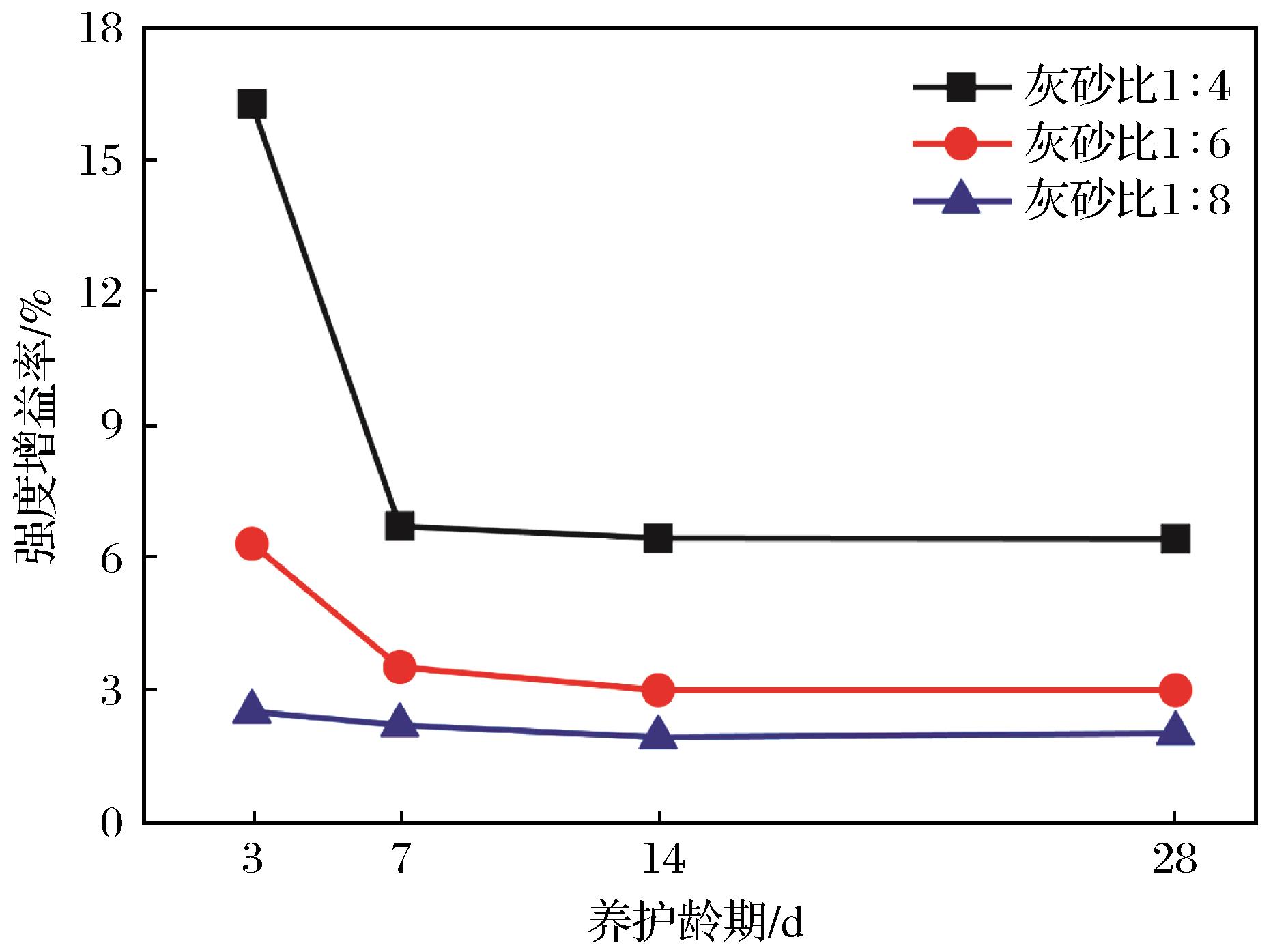 | 图5 不同养护龄期充填体试件的强度增益率 different curing ages |