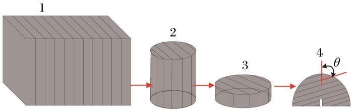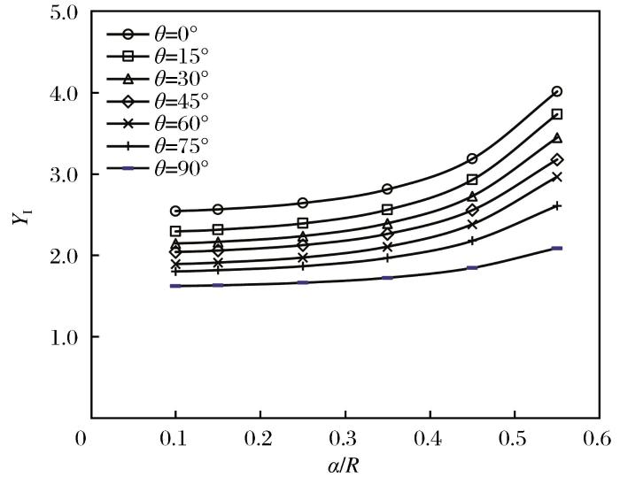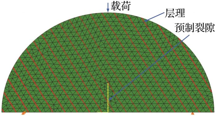 ... 然而,由于层理结构板岩具有明显的各向异性特征,难以直接用公式计算其断裂韧度.本研究采用Shi et al.(2018)提出的方法计算无量纲应力强度因子,如图11所示,详细内容不再赘述.层理面倾角对无量纲应力强度因子的影响如图12所示. ...