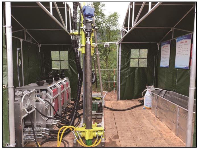 目前,国内使用的主流地质岩心钻机是机械传动、液压给进的立轴式钻机(潘学森等,2005)。该类钻机存在体积大且笨重、钻进效率低、工人劳动强度大、适应性差和危险性高等缺点。随着地质勘查技术转型升级步伐的加快以及液压技术的发展,全液压钻机动力头式岩心钻机发展迅速(曹志良,2013;张伟,2008)。全液压动力头钻机具有功能齐全、程序化和智能化程度高等优点,在国外已是普及型钻机(孙友宏等,2007;张林霞等,2012;朱兴等,2014;薛倩冰等,2020)。2001年,我国逐步引进全液压动力头钻机。然而,由于进口钻机价格偏高、配件备品供应周期长以及维修费用高等原因,进口全液压动力头钻机在国内市场接受度不高。此外,虽然国产全液压动力头钻机的价格比进口钻机低,但存在故障频发和维修困难等问题(庞少青等,2014;刘旭光等,2015;米树刚等,2021),最终也没有得到全面推广应用。