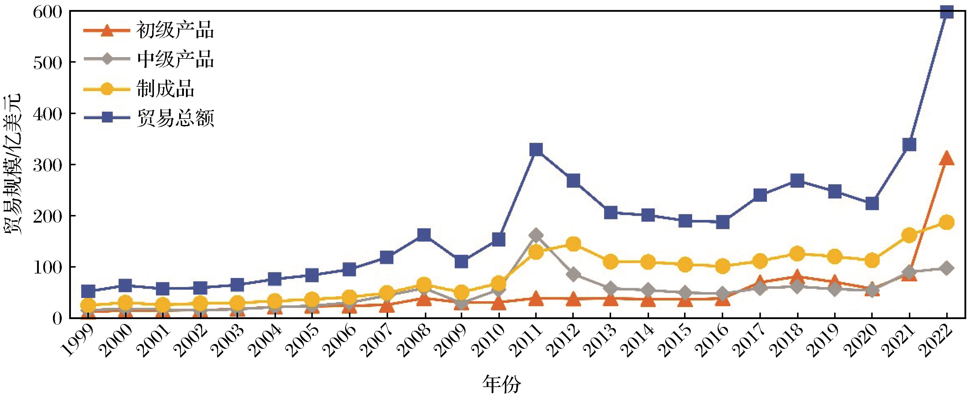 | Fig.2 Global rare earth trade amount from 1999 to 2022 |
