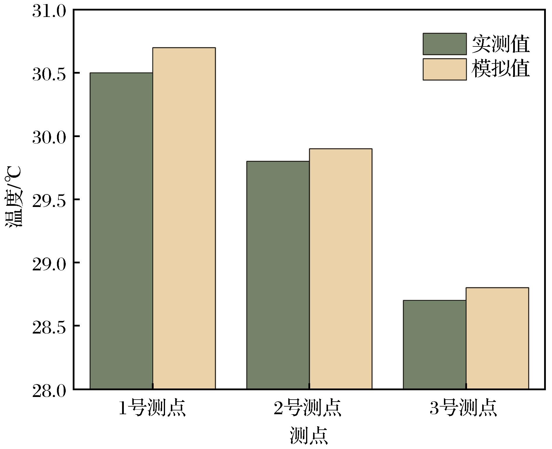 | Fig.5 Comparison of simulated and measured temperature values of three measurement points |