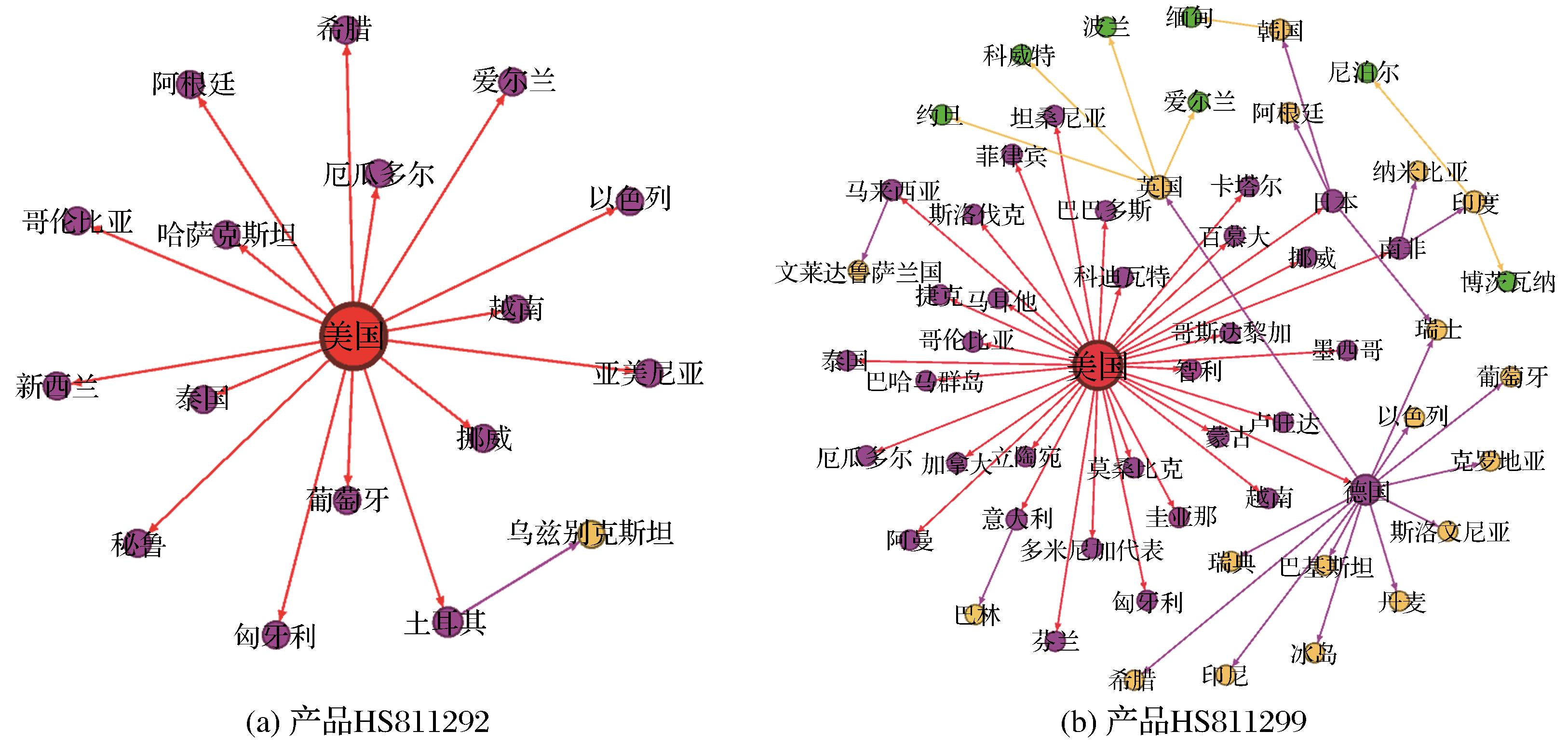 | 图8 2022年以美国为传播源的产品HS811292和产品HS811299危机传播路径 |