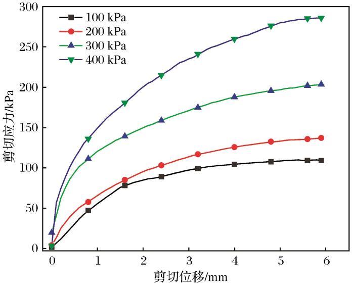 400 kPa垂直应力下土样的剪切强度与剪切位移的关系曲线