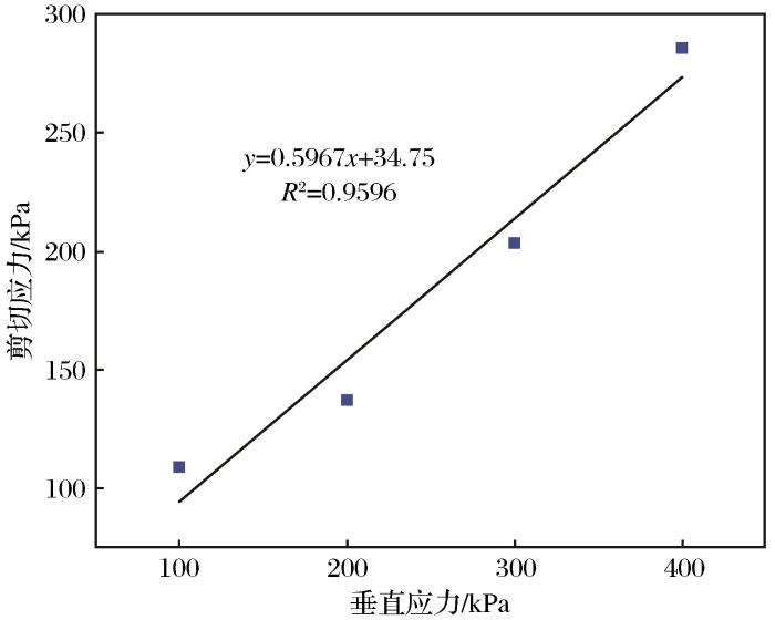 根据拟合结果,求出含水率为17.5%的土样c和φ 值分别为34.75 kPa和30.79°。
