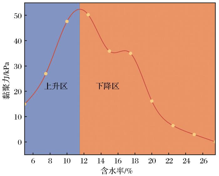 不同含水率土体黏聚力变化曲线