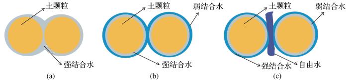 为进一步研究含水率与黄土抗剪强度指标之间的关系,诸多学者从分析土体细观结构的角度出发,利用核磁共振(Yuan et al.,2022)和CT(庞旭卿等,2016)等技术手段,探究不同含水率下土体孔隙水含量变化、持水特性和水赋存状态,土体内部结构等细观演变过程与黄土抗剪强度指标之间的关系。黄土抗剪强度随含水量变化的趋势源于土的微观结构、水分组成以及黏粒与水的相互作用的差异(Zheng et al.,2022),随着含水率的变化,土样微观结构也会发生变化,且土样孔隙中的水分分布也会发生变化(Chen et al.,2023)。黄土样品水分主要有2种存在状态:一是存在于小孔径中的结合水;二是存在于中大孔径中的自由水,自由水的占比越高则土样的抗剪强度越低(Wu et al.,2021)。上述研究结果表明,黄土细观结构变化和内部水分类型的占比都是引起黄土抗剪强度指标变化的重要因素,但土体细观结构变化与其内部水分类型变化是如何共同作用并影响黄土抗剪强度指标的机理过程尚有待深入研究。