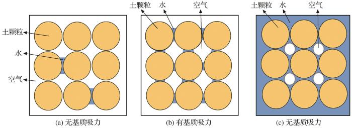 水、空气、土颗粒之间的结构与基质吸力的关系