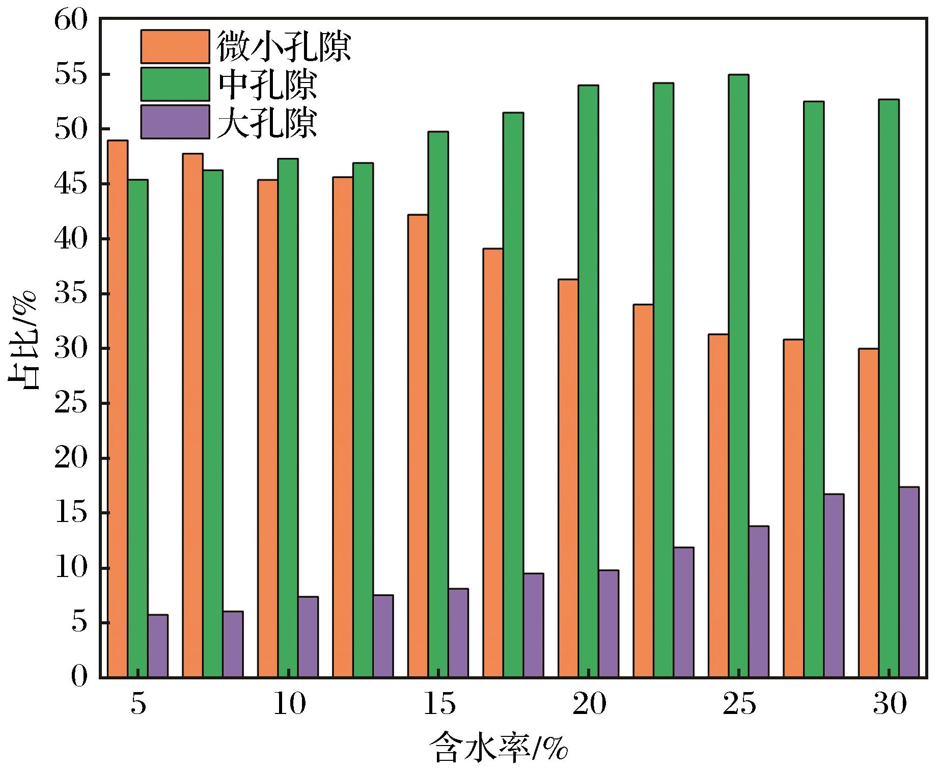 | 图10 不同含水率土样中各类型孔隙占比 |