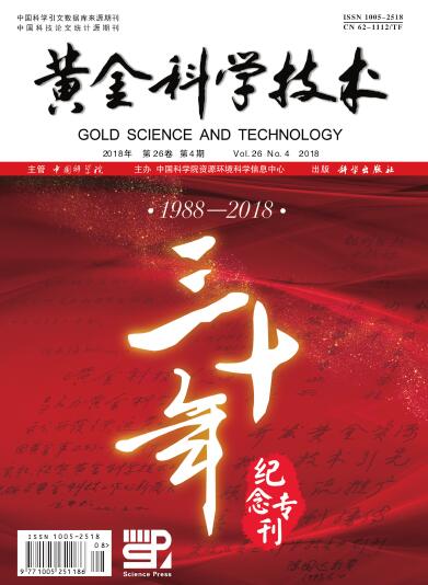 熊耳山地区槐树坪金矿床位于华北克拉通南缘,矿体赋存于中元古界熊耳群火山岩地层中,受断裂控制。矿石类型为蚀变岩型和石英脉型,主要的金属矿物有黄铁矿、方铅矿、闪锌矿和黄铜矿。热液成矿过程划分为早、中、晚3个阶段,分别形成石英—黄铁矿脉、石英—多金属硫化物脉和石英—方解石脉。早阶段黄铁矿为自形粒状,粒径为0.8~2.0 mm;中阶段黄铁矿为半自形、他形粒状,粒径为0.30~0.45 mm;晚阶段黄铁矿为自形—半自形粒状,粒径为0.1~3.0 mm。电子探针分析结果表明:该矿区黄铁矿S元素质量分数为51.25%~52.71%,Fe元素质量分数为45.78%~48.11%。其中,成矿阶段黄铁矿的Cu、Zn、Sb元素质量分数分别为0.11%、0.13%和0.12%。Co/Ni比值为0.57~0.60;黄铁矿的δFe-δS 主量元素投图和Co-Ni-As质量分数三角图研究表明,槐树坪金矿床成矿流体来源为中低温变质热液。
